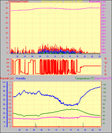 Maximum windspeed = 8.1 mph on day 29 at time 00:15
