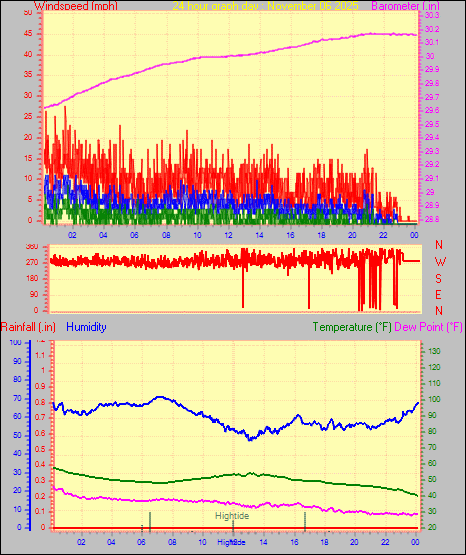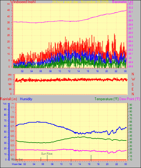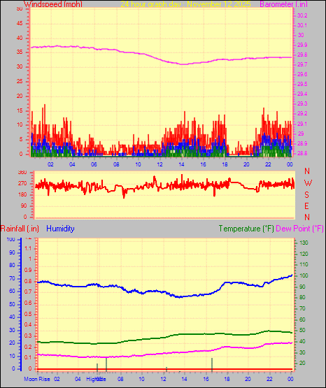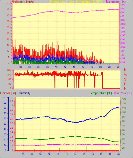 Maximum gust speed = 23.0 mph from 284 °(WNW) on day 30 at time 09:31