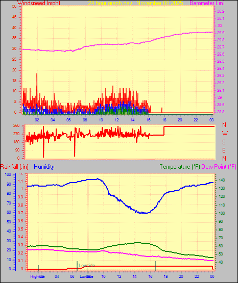 Maximum windspeed = 16.1 mph from 271°( W ) on day 16 at time 18:39