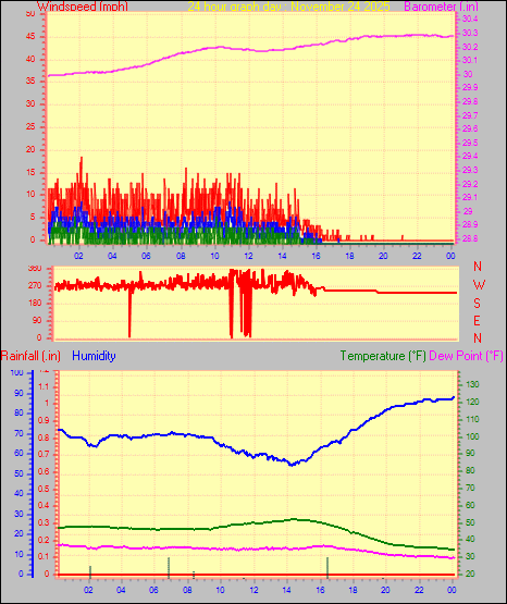 Maximum windspeed = 11.5 mph on day 29 at time 04:08